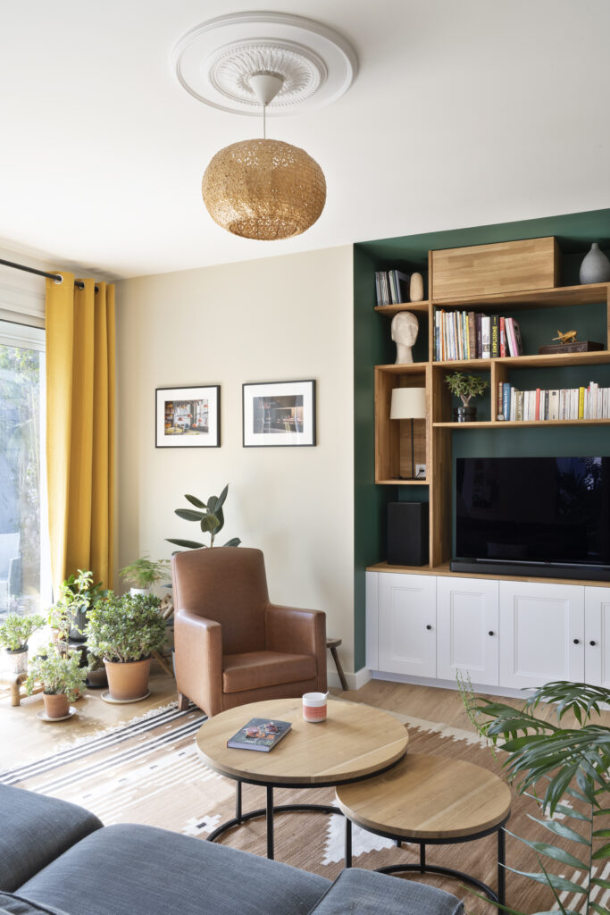 Le canapé, les plantes et les objets déco des habitants trouvent leur juste place dans cet univers plus fluide et harmonieux.